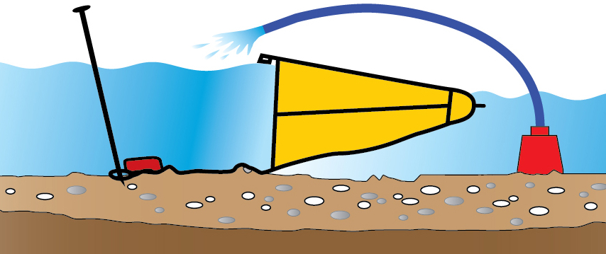 In acque calme, le cofferdam vengono pre-posizionate ancorando il bordo d’attacco al fondo dell’acqua. L’ormeggio viene effettuato utilizzando dei paletti posti negli anelli metallici sul bordo d’attacco per impedire il movimento del telo fino a quando il cassero non è completamente pressurizzato mediante pompaggio.